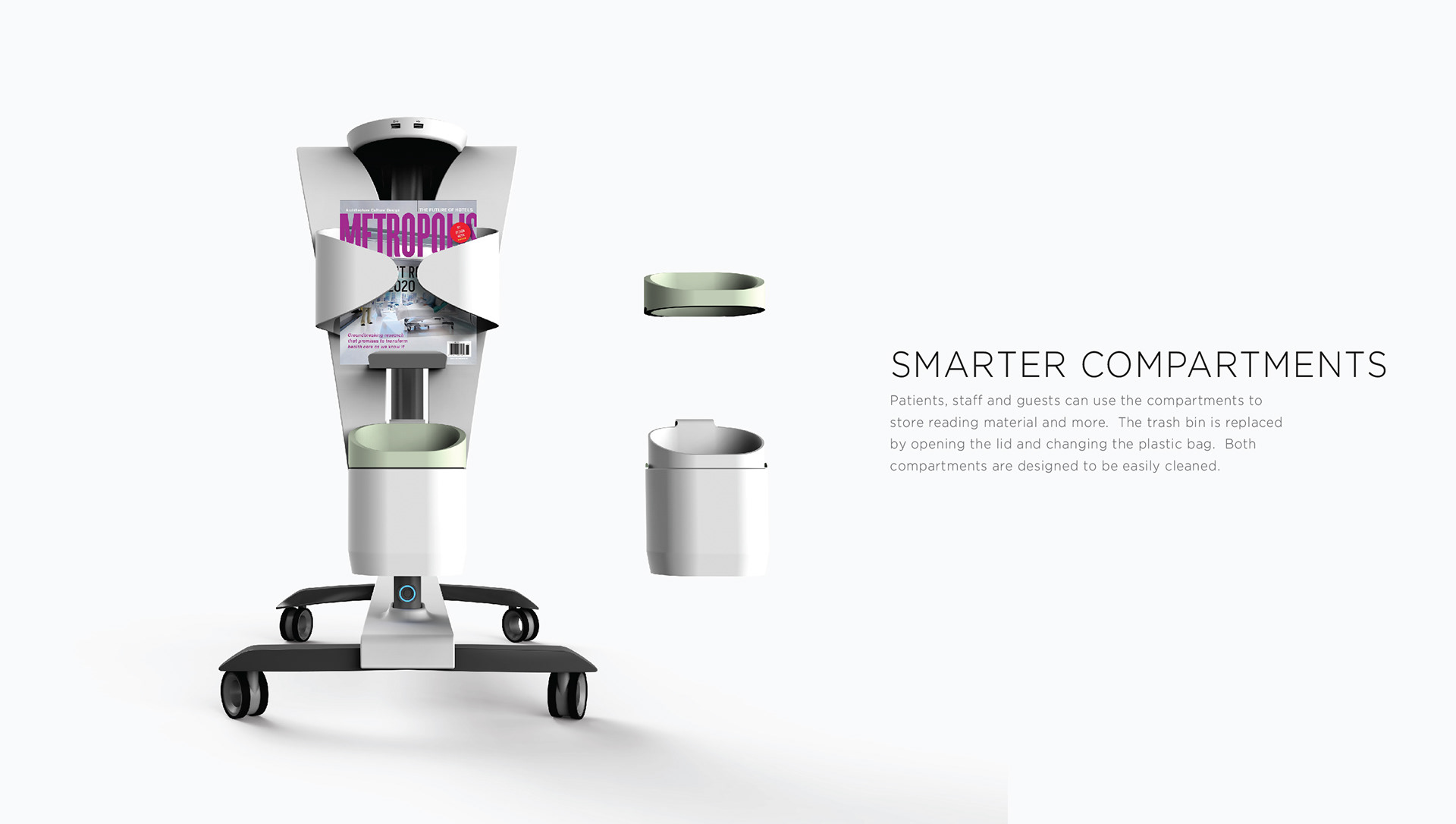 The Patient Companion had the ability to positively impact a large & diverse user group because it creates a new engagement platform for patients. The design combines elements such as, a table, touchscreen display and storage, to form a single piece of mobile furniture that could be utilized in a wide range of healthcare settings.